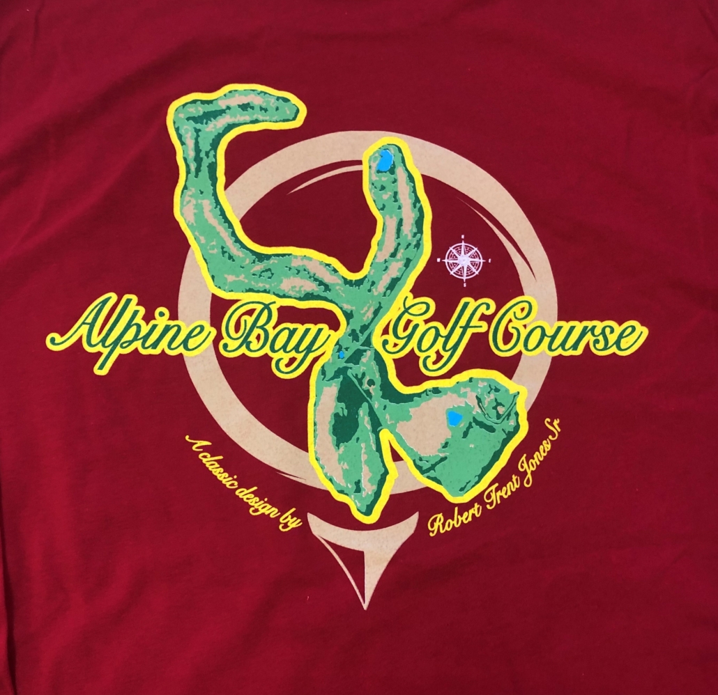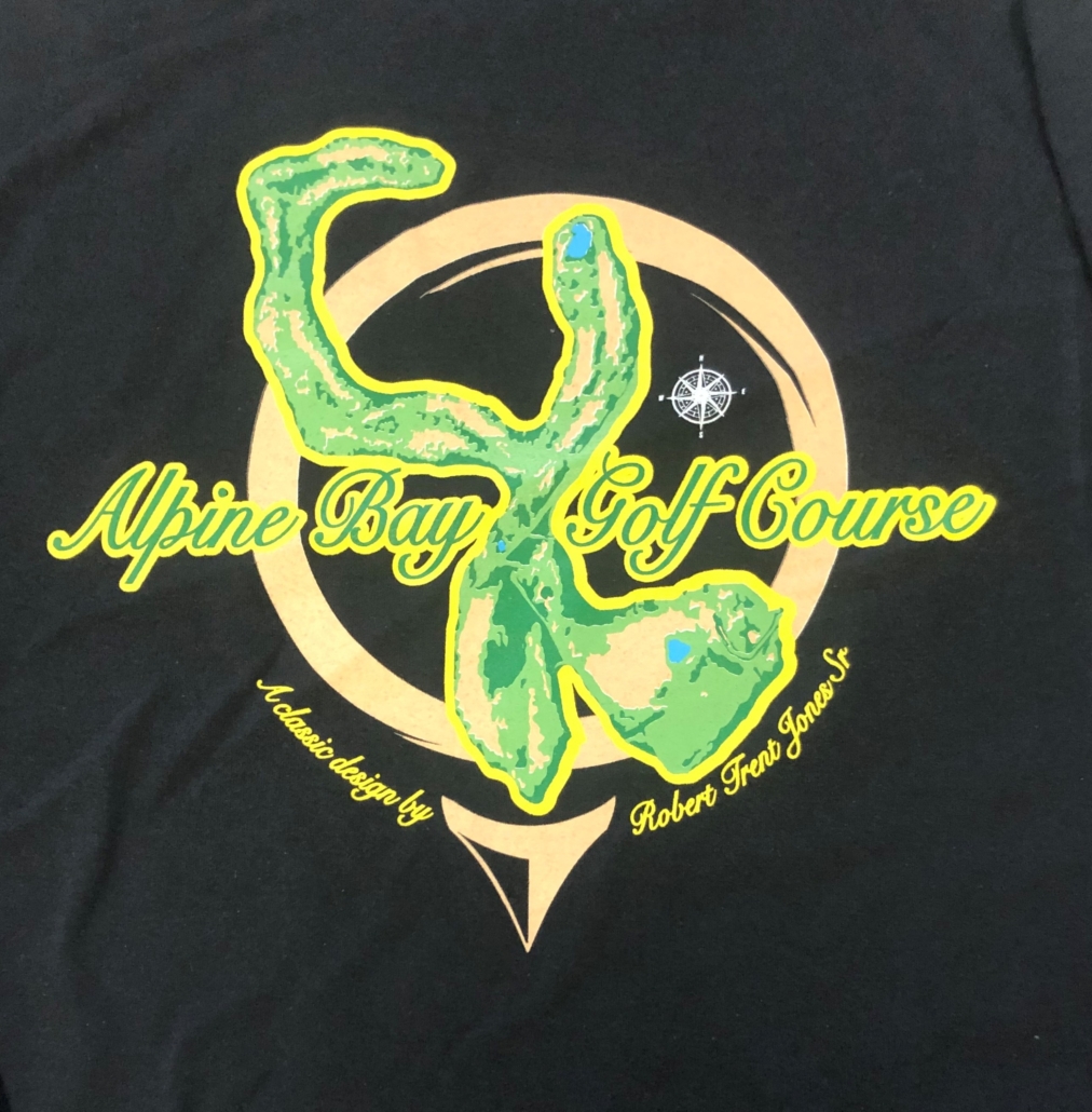 This shirt features our classic logon on front and our golf course footprint on the back. It also acknowledges the course designer ( Robert Trent Jones Sr)